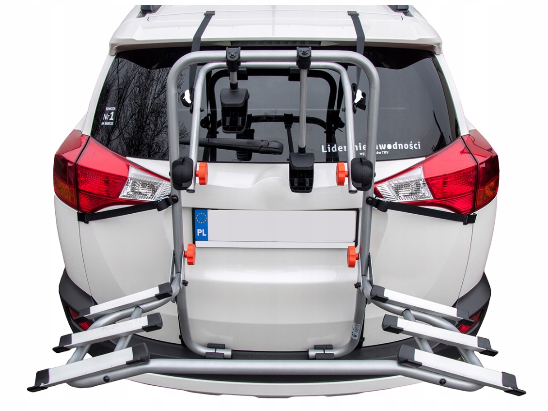Велосипеды размещаются на соответствующей высоте, чтобы не закрывать номерной знак, что важно для безопасности дорожного движения. В сложенном виде багажник занимает мало места, что упрощает его хранение.