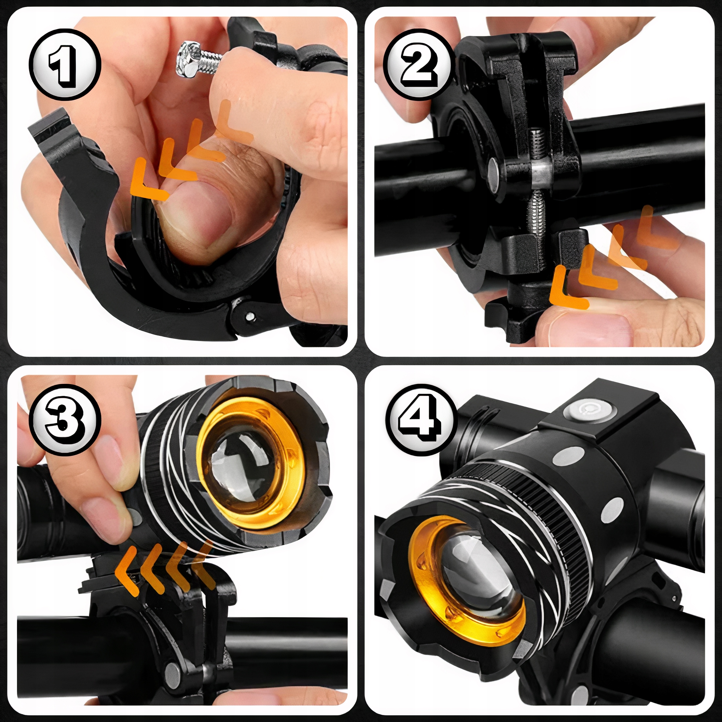 ✔️Интуитивно понятная установка✔️Установить фонарь на руль велосипеда легко и не требует специальных инструментов. Благодаря практичному механизму лампу можно быстро прикрепить и отсоединить всего за несколько минут, обеспечивая надежное и стабильное крепление.