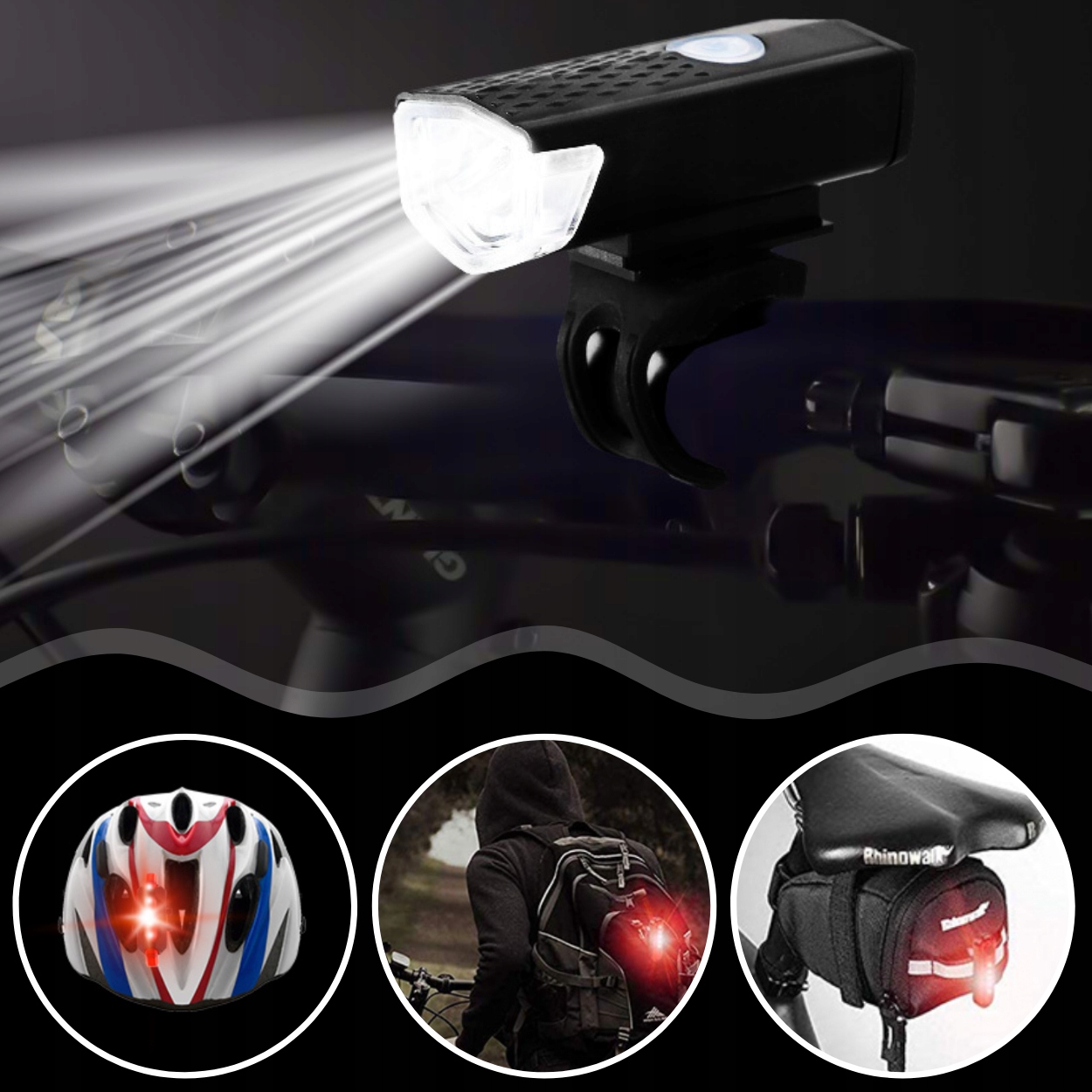 СВЕТОДИОДНАЯ ВЕЛОСИПЕДНАЯ ФОНАРЬ ДЛЯ ВЕЛОСИПЕДА, РУЛЬ, МОЩНАЯ АККУМУЛЯТОРНАЯ USB + ЗАДНЯЯ