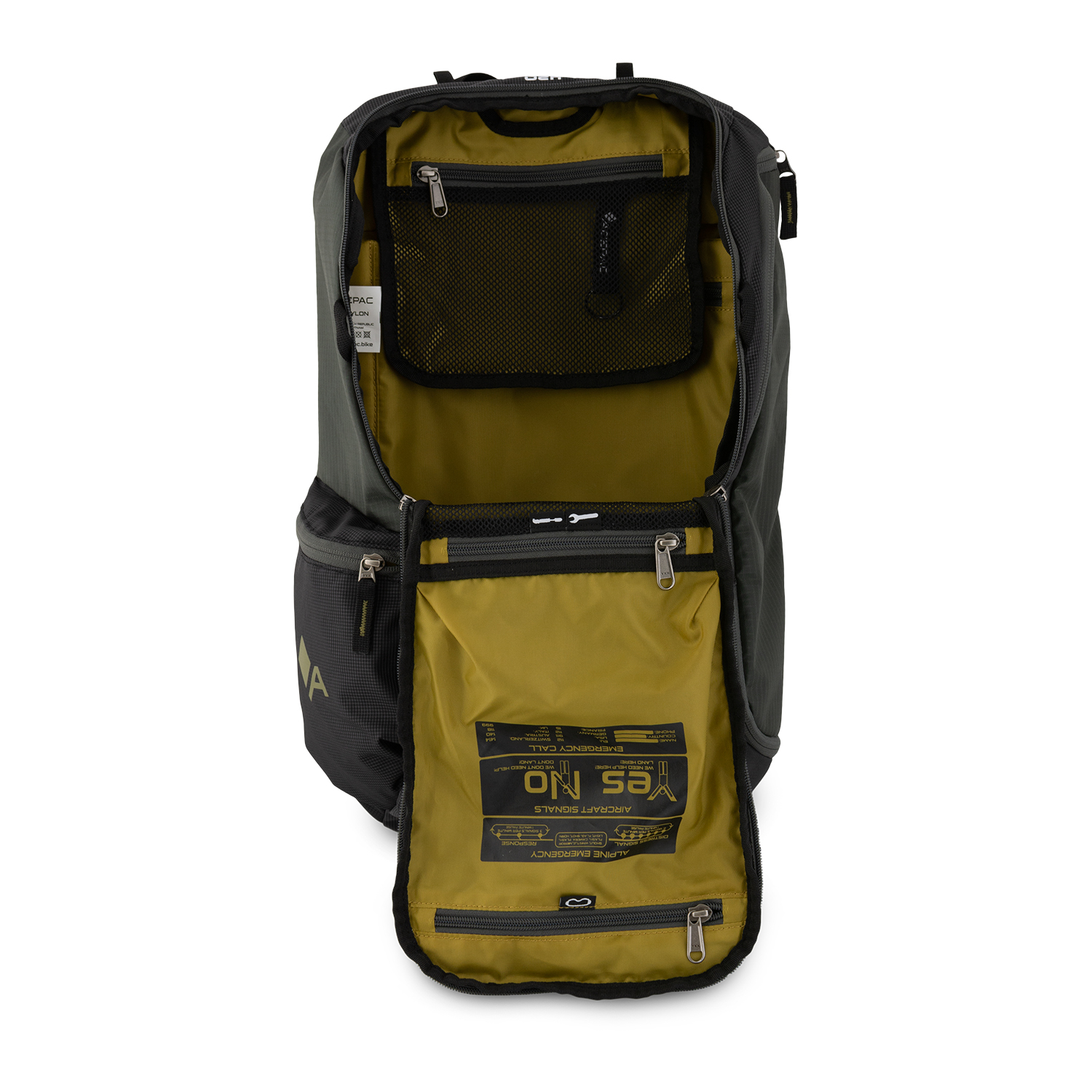 - SOS-распечатка со схемой для вызова спасательных служб в горах (внутри основное отделение);