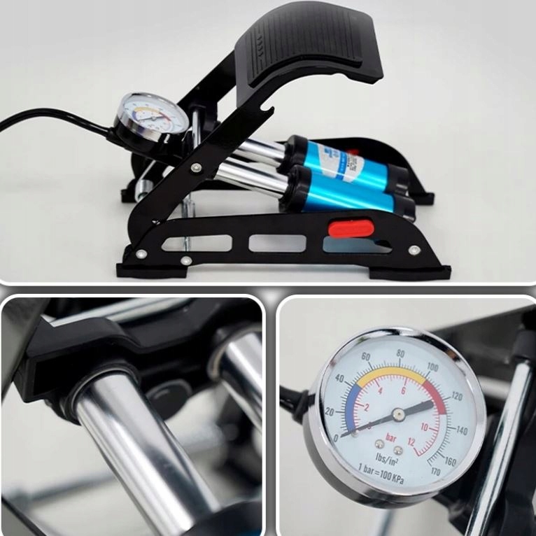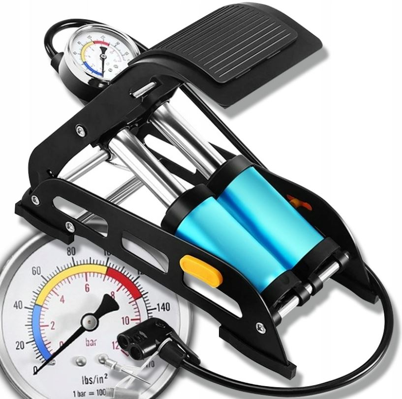 МОЩНЫЙ ДВУХПОРШНЕВОЙ АВТОМОБИЛЬНЫЙ ВЕЛОСИПЕДНЫЙ НОЖНОЙ НАСОС С МАНОМЕТРОМ