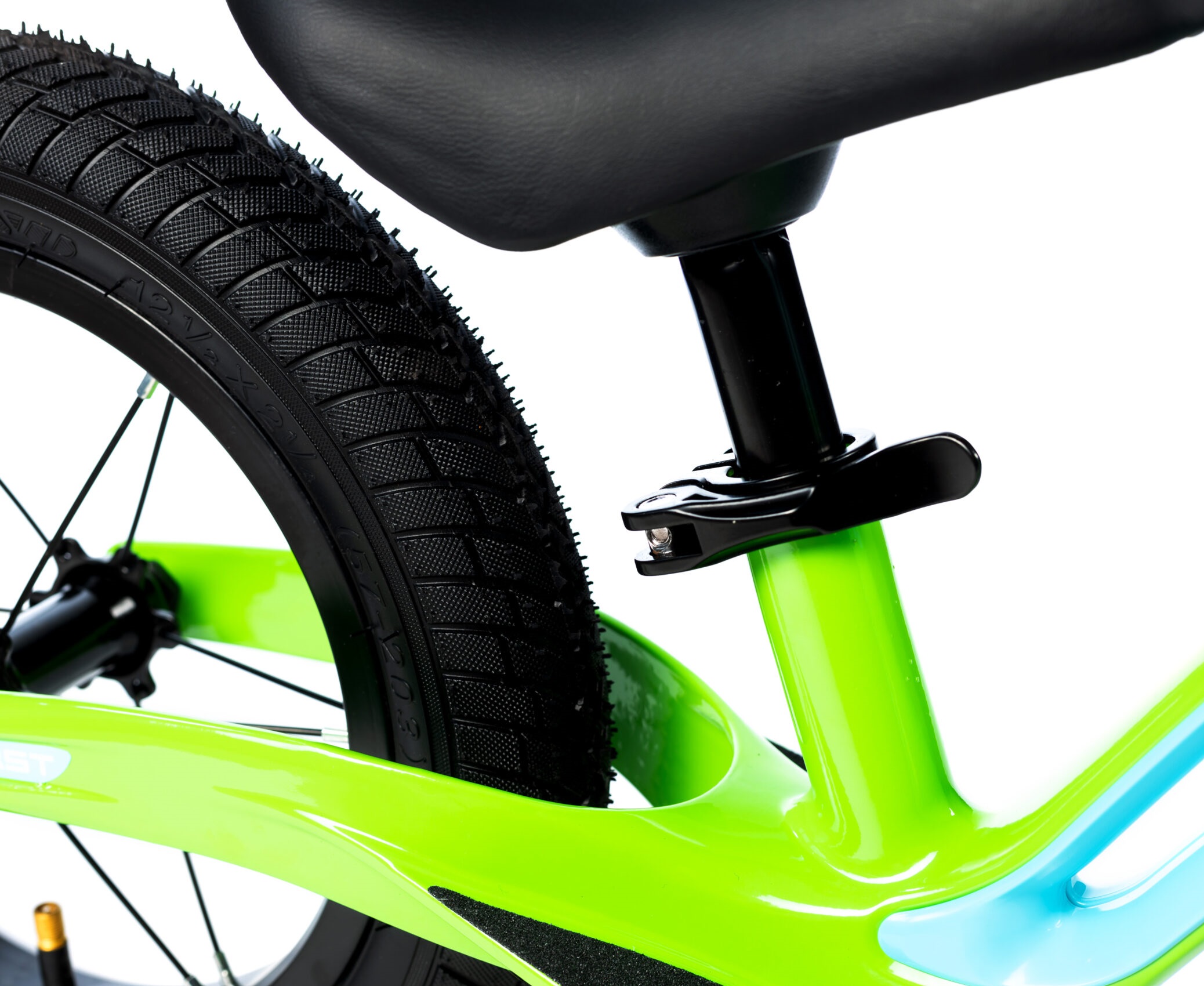 Надежный захват обеспечивают ручки из нескользящей резины. Ручки предназначены для защиты рук ребенка во время падения. Руль, обода и подседельный штырь изготовлены из алюминия. Велосипед удобен для родителей, безопасен и прост в освоении для детей.Удобные подножки облегчают поддержание ног, например, при переезде лужи.