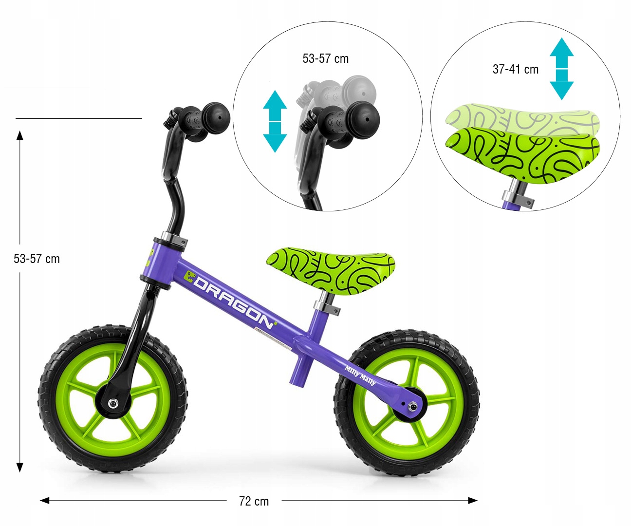 Dragon Runging Bike - идеальное решение для детей, которые только начинают учиться ездить на велосипеде. Этот велосипед лишен педалей, что позволяет ребенку сосредоточиться на обучении поддержанию баланса и направления.
