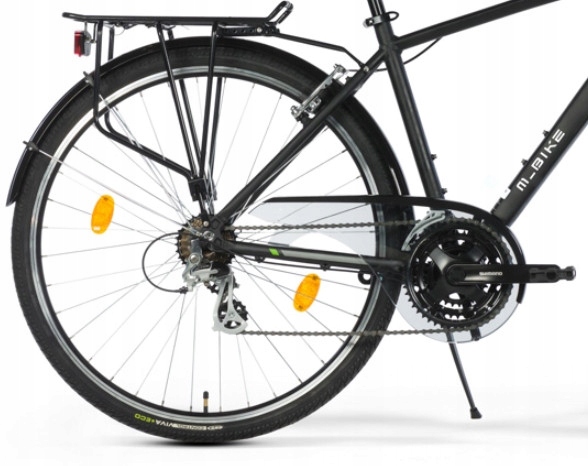 ДОПОЛНИТЕЛЬНАЯ ИНФОРМАЦИЯ жесткий алюминий рама с удобной геометрией, амортизатор Zoom CH-128 700C, задний переключатель Shimano Altus с приводом 3 x 7, багажник, полные брызговики SKS, подножка, чехол для цепи и фонарь аккумулятора (двойная функция спереди); 28-дюймовые колеса Mach1; Шины CST
