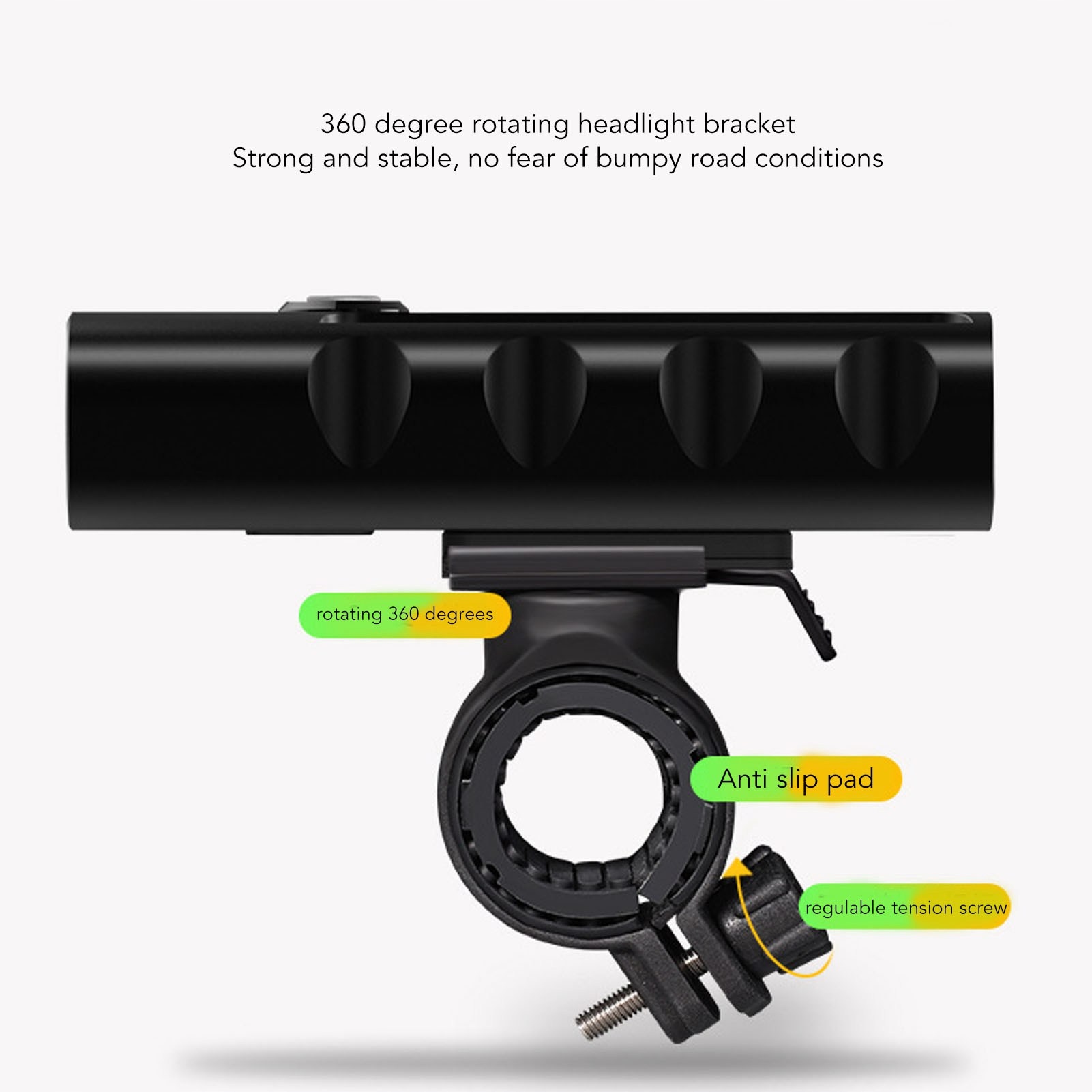 4. Простота крепления и практичность: велосипедная фара поставляется с пряжкой из алюминиевого сплава и монтажным кронштейном, ее можно легко прикрепить к рулю без инструментов, а также использовать в качестве фонаря для палатки и т. д.