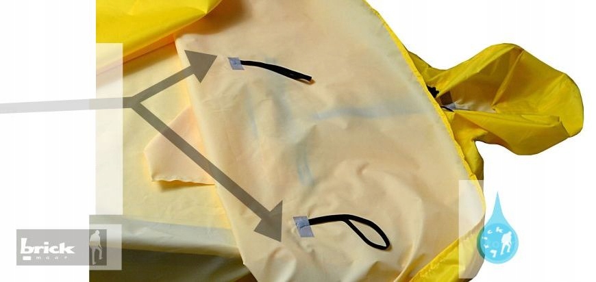 Капюшон регулируется эластичным шнуром со стопором и пластиковым наконечником. Накидка застегивается на ВОДОНЕПРОНИЦАЕМУЮ молнию.