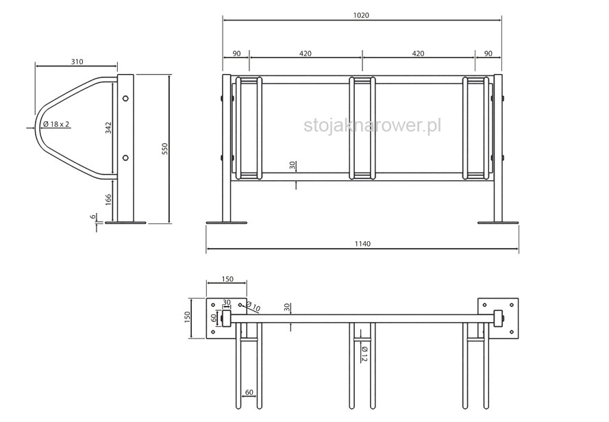 - материалы [мм]: труба Ø 18×2