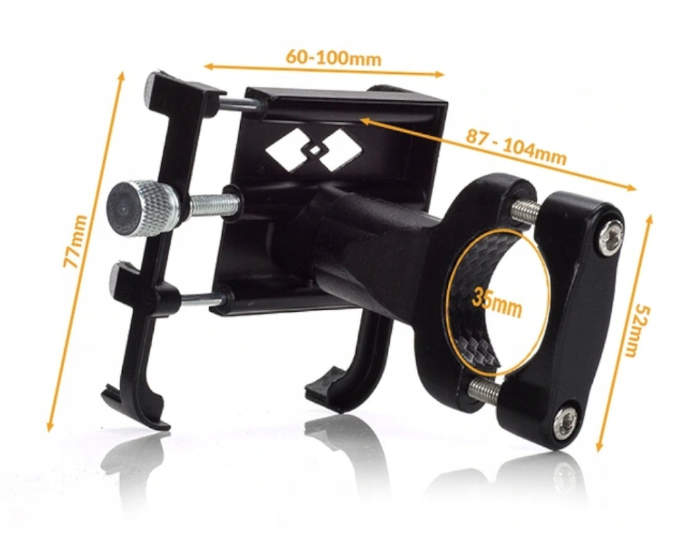 Зажимы держателя выдвигаются от 60 мм до 100 мм. В настоящее время на рынке нет телефона, который мог бы достичь такой ширины. Высота держателя не имеет значения: держатель открыт сверху, что позволяет устанавливать телефоны с разным соотношением ширины и высоты.