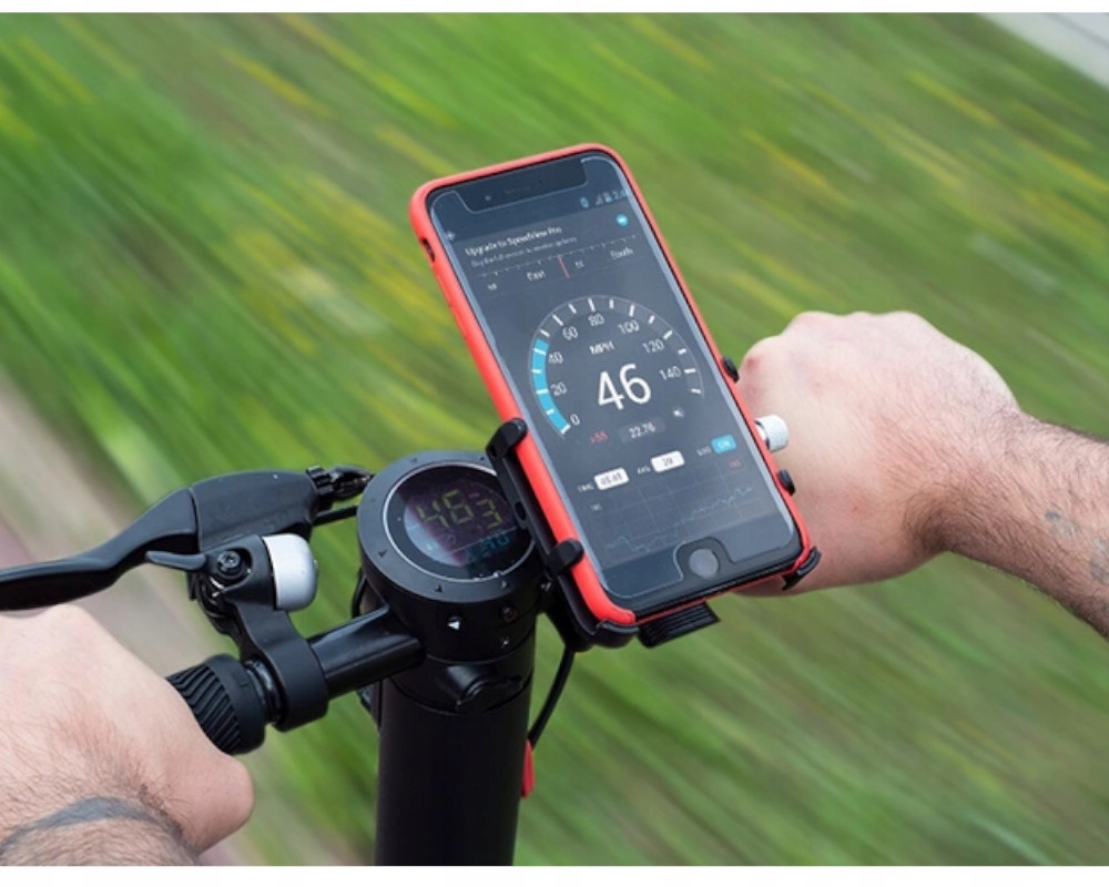 Это прочный алюминиевый держатель для телефона, который можно прикрепить к рулю или ободу любого типа. Благодаря широким возможностям регулировки держатель можно легко установить на многие велосипеды. Идеально подходит для велосипедов, самокатов, скутеров и мотоциклов.