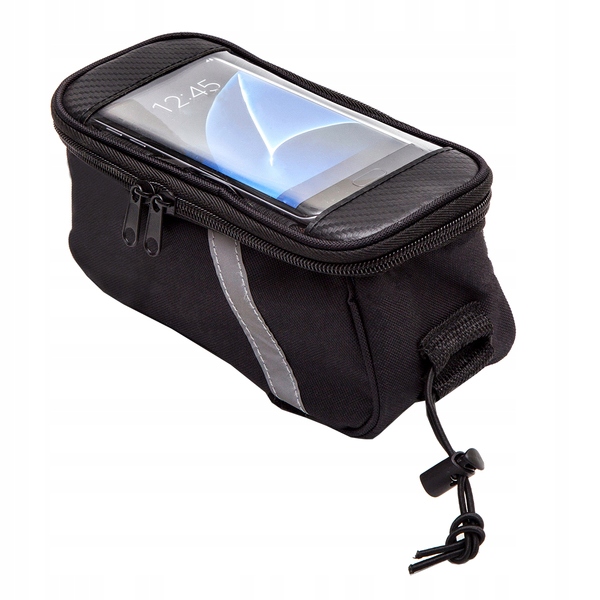 Сумка с отделением для смартфона для крепления на раму велосипеда. Повышает видимость велосипедиста благодаря светоотражающим элементам. Позволяет использовать сенсорные функции телефона через фольгу. Телефон в комплект не входит.