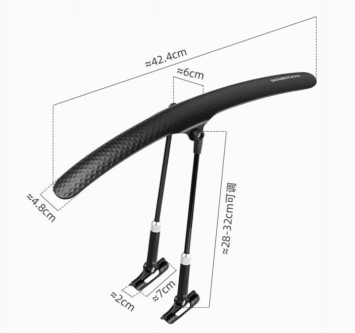 ✔ Конструкция с двумя регулируемыми стойками делаеткрыло очень устойчивым во время езды . Дополнительным преимуществом такого решения является возможность установки брызговика под удобным углом и расстоянием. Длина кронштейна позволяет регулировать его в диапазоне 28-32см.
