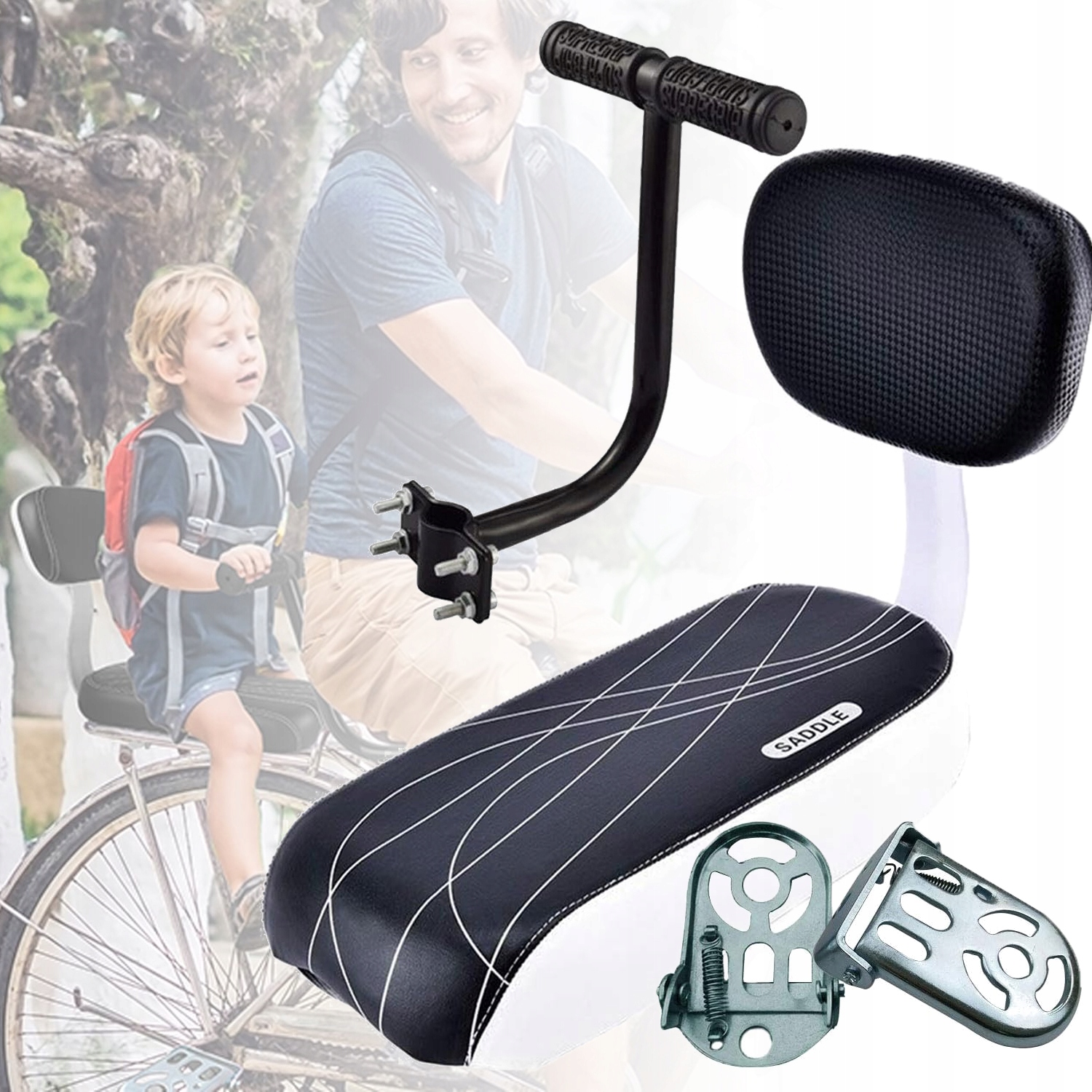 [Простая установка]: это велосипедное сиденье легко крепится к любой раме велосипеда, для этого требуется только плоская и несущая рама. Спинка съемная для комфорта и безопасности.