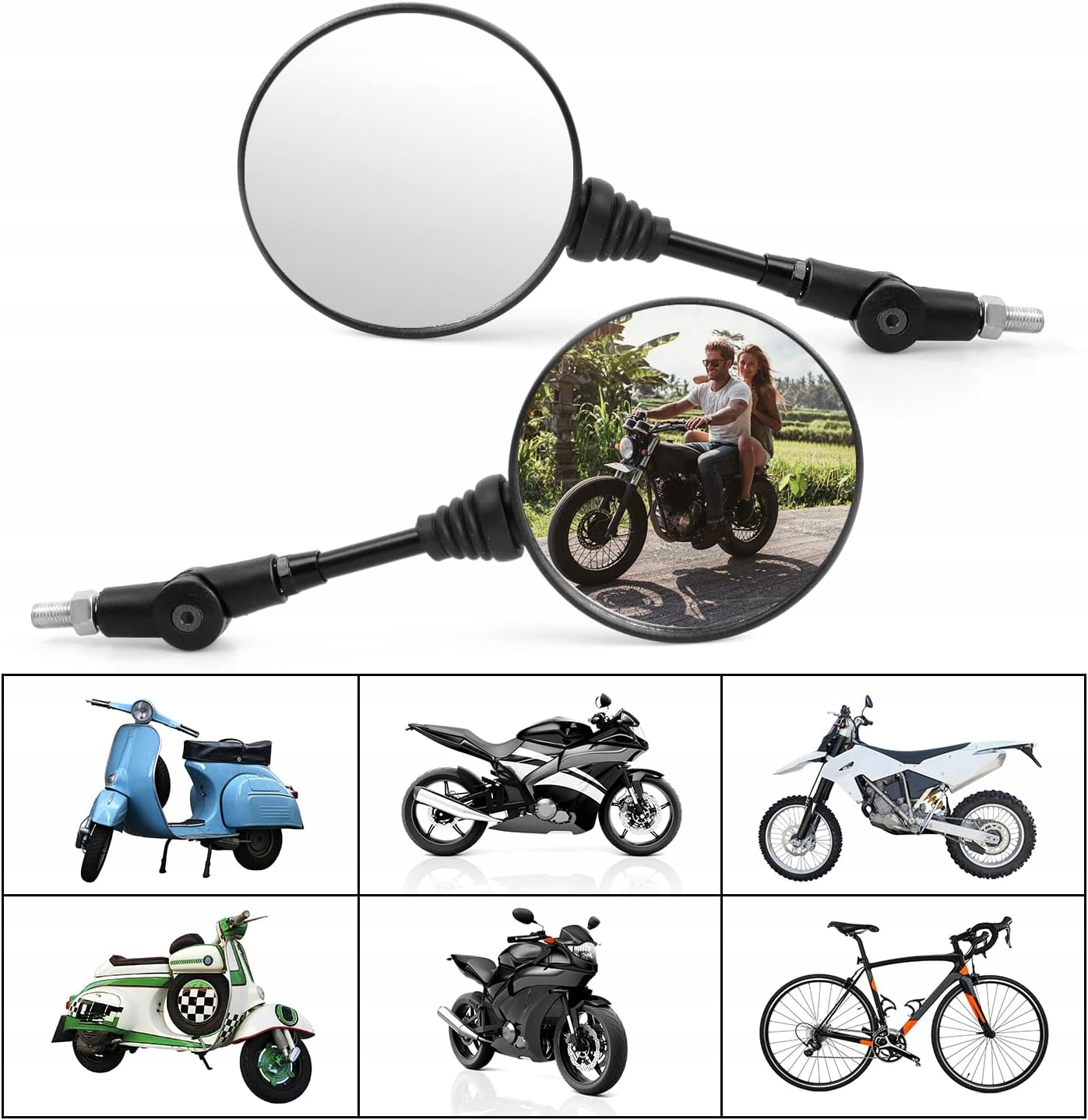 🚴🚴🚴【 Обычно используется】 Эта пара зеркал с обратными мотоциклами совместима с большинством двигателей и подходит для большинства мотоциклов, транспортных средств, за пределами дорог, уличных автомобилей, транспортных средств с дороги, велосипедов BMX и скутеров. Они также могут быть установлены на велосипедах.