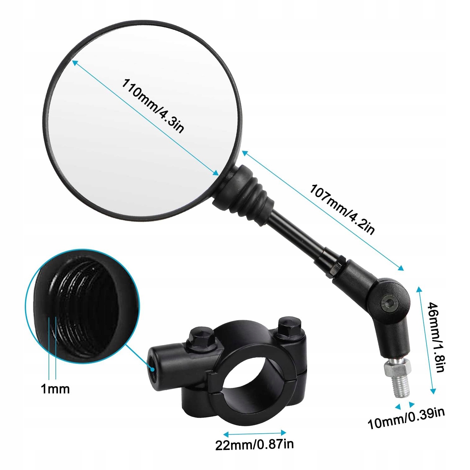 🚴🚴🚴【 Прозрачное поле зрения】 Рулевое зеркало имеет белые прозрачные стеклянные линзы, обеспечивающие высокое определение и более широкое поле просмотра предстоящих транспортных средств и препятствий. Зеркало прикреплено винтами, которое простое и удобное для установки, с красивым и элегантным внешним видом, идеально подходящим для мотоцикла. Примечание. Перед покупкой убедитесь, что потоки и базовый размер продукта совместимы с вашей моделью!