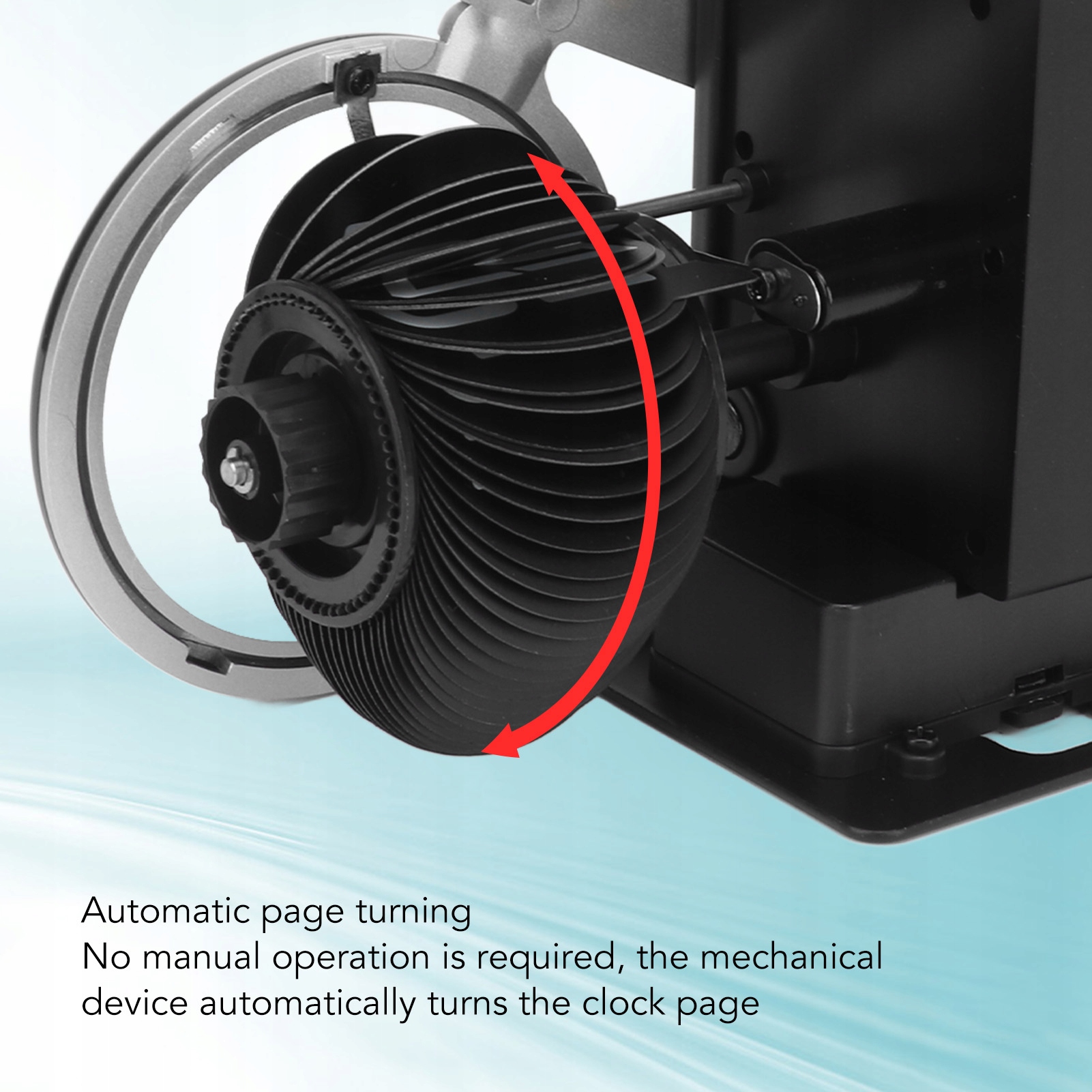 4. Автоматический поворот страниц: без ручного управления механическое устройство автоматически поворачивает страницу часов, используя 12-часовую систему, поэтому вы всегда знаете точное время.