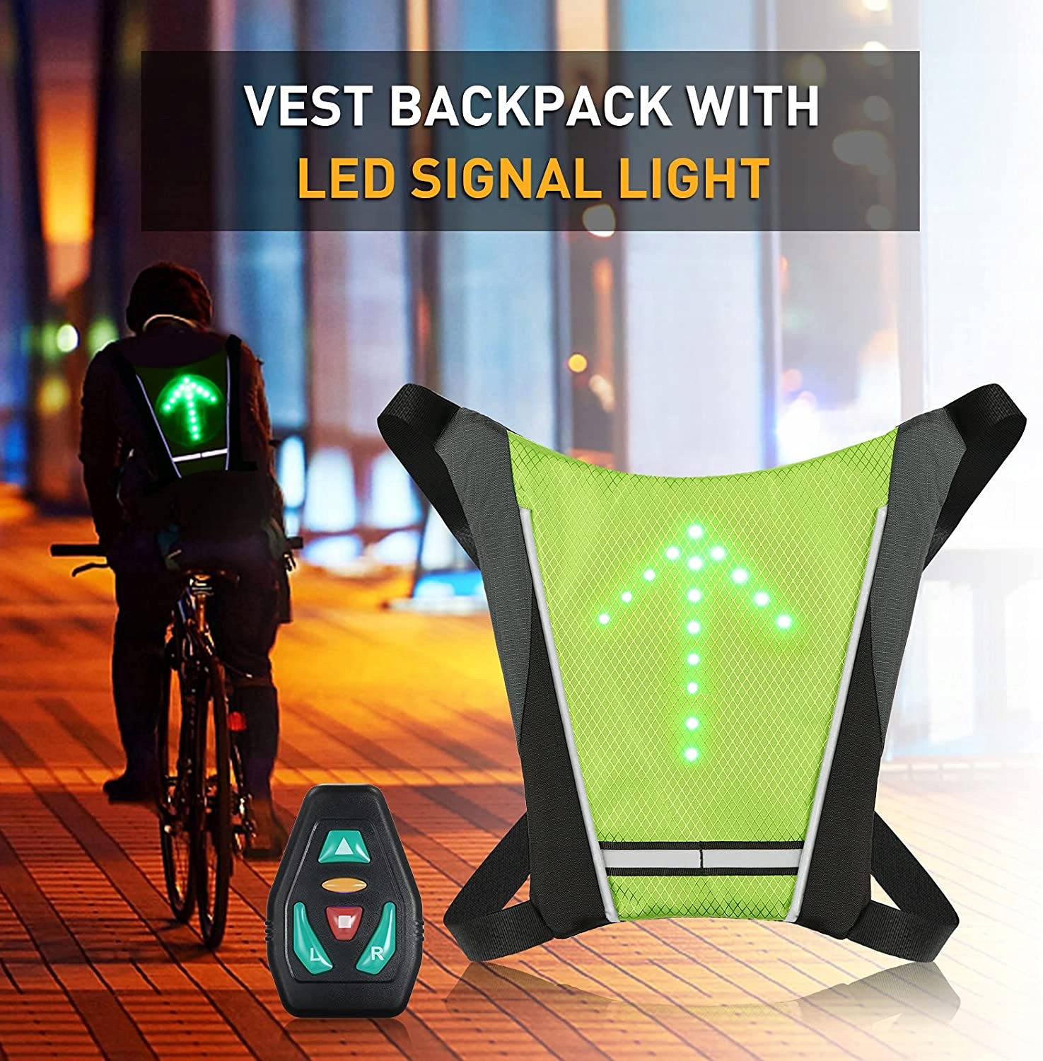 Гарантия безопасностиЛегкий рюкзак со светоотражающими полосами и светодиодными светофорами на светодиодном велосипедном жилете может обеспечить лучшую видимость и безопасность в ночное время. Этот велосипедный жилет с возможностью зарядки от USB позволяет кататься на велосипеде ночью.