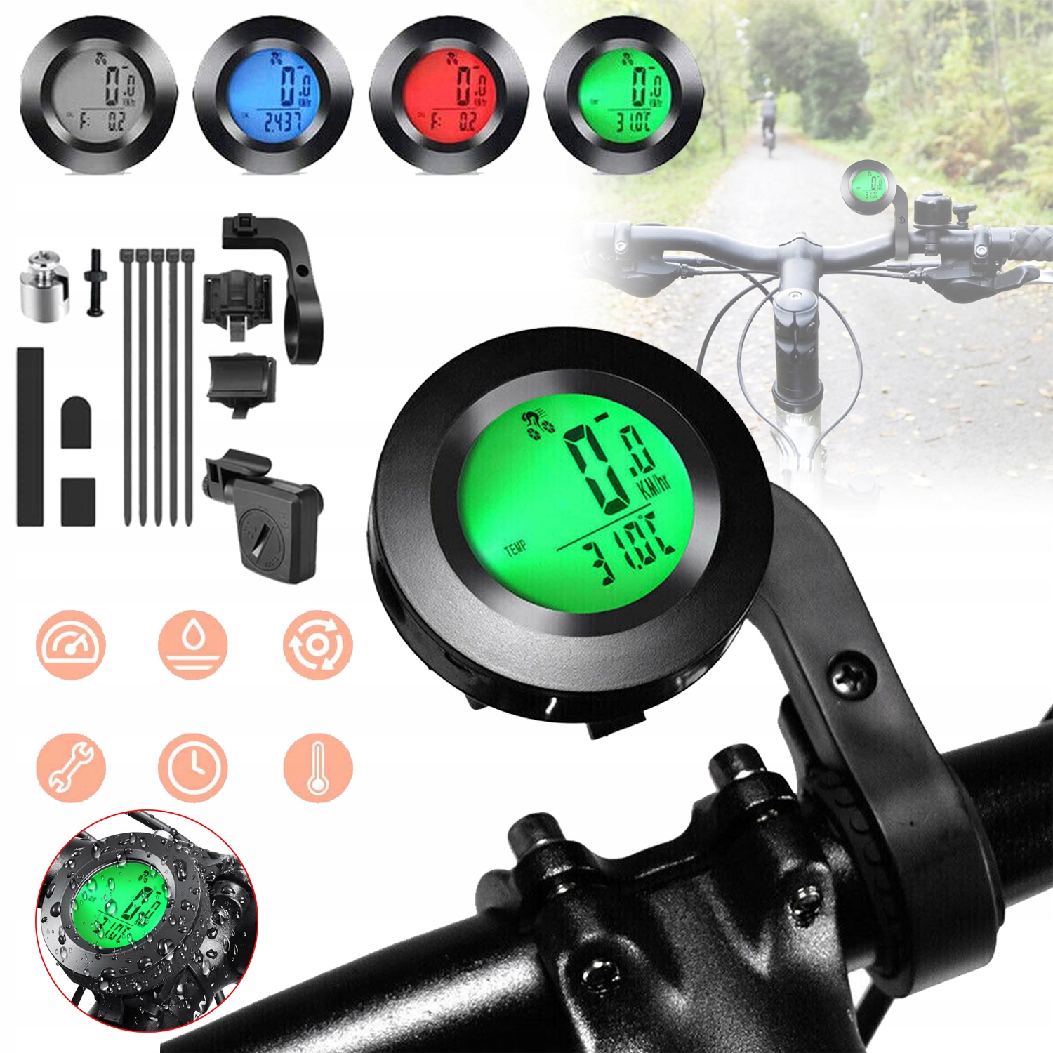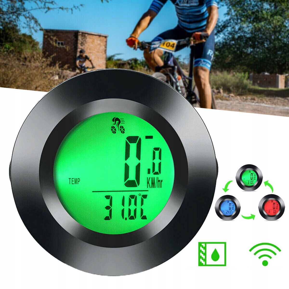 Велосипедный компьютер, километры с 3-цветовым отображением.