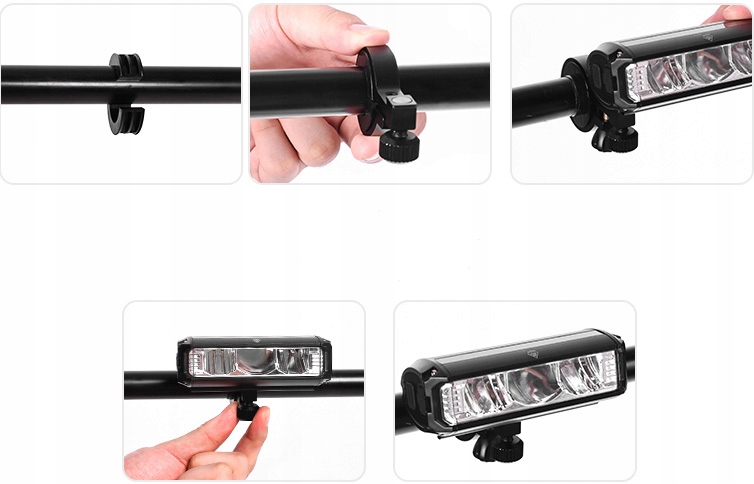 - Установка: универсальный зажим для руля.