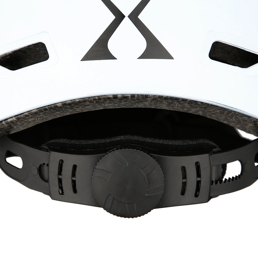 Шлем доступен в различных размерах, а также имеет систему, позволяющую точно регулировать его расположение. Это делается с помощью ручки, расположенной на задней части шлема. Ремешок с удобной пряжкой гарантирует, что шлем не упадет, а при необходимости быстро снять его не составит проблем.