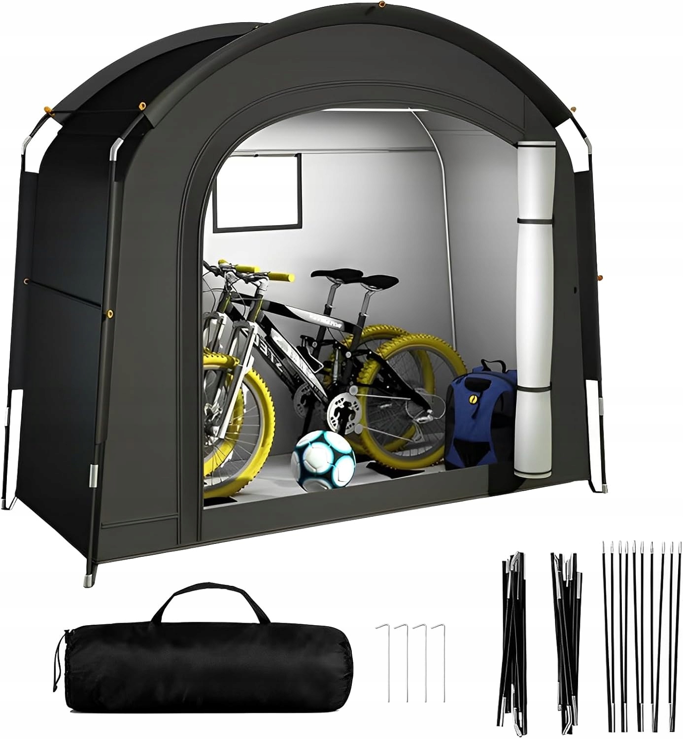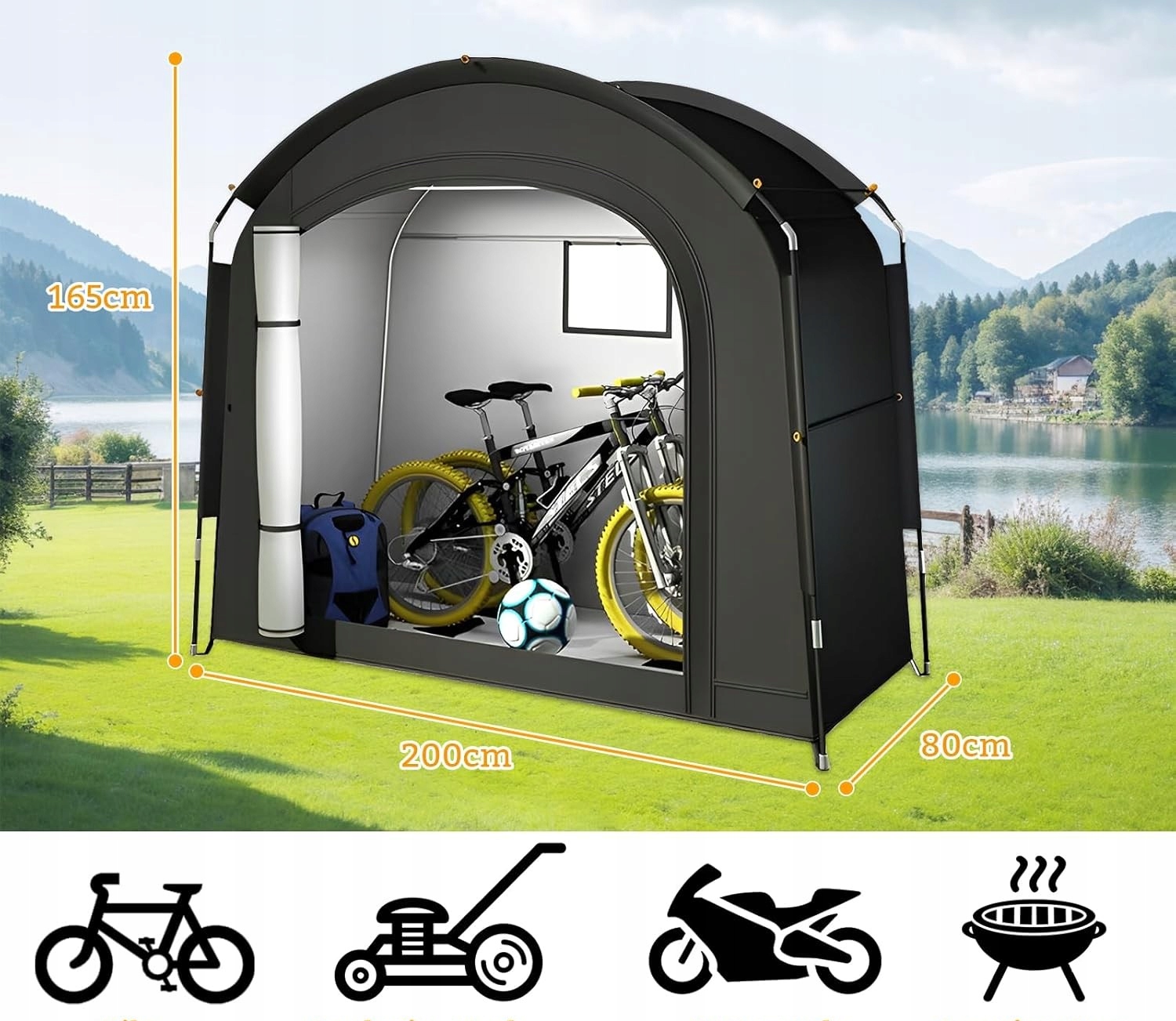 Большая палатка для велосипедов 200 × 80 × 165 см предлагает достаточно места для легкого хранения 2 велосипедов и даже до 3 двухколесных транспортных средств или другого уличного оборудования. Он также идеально подходит в качестве места для хранения садовых инструментов, туристического снаряжения, аксессуаров для бассейна, игрушек или небольшой мебели. Это практичное решение для сада, террасы, участка или во время путешествия.
