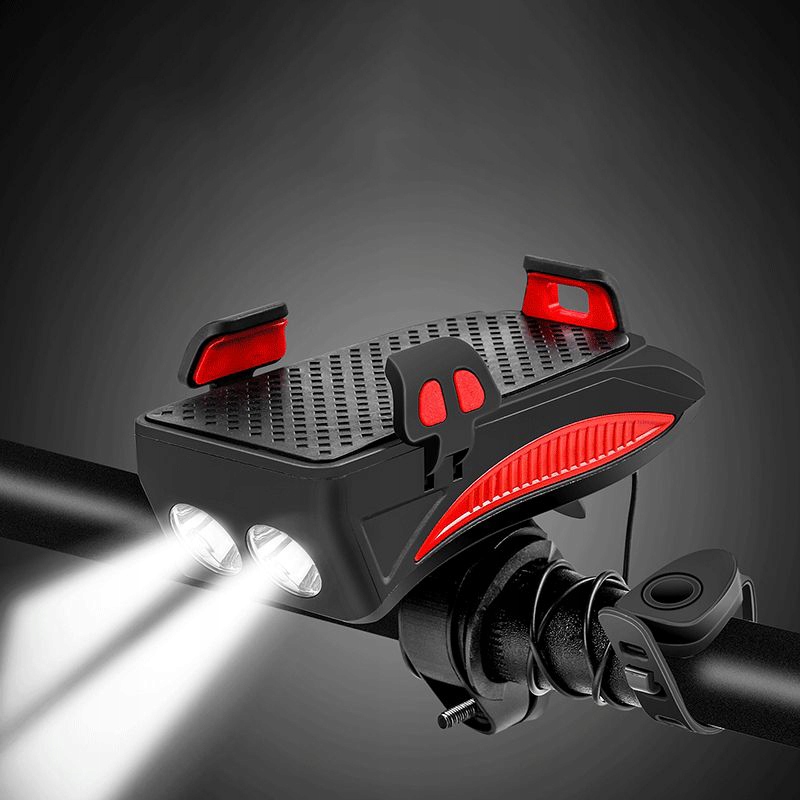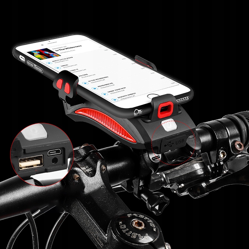- Велодержатель для телефона со встроенным аккумулятором, светодиодной лампой и звуковым сигналом.