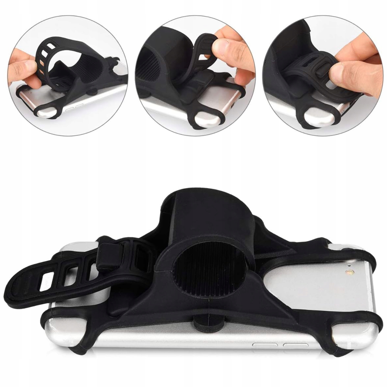 - Мгновенная установка — держатель крепится с помощью гибкого силиконового ремешка, который достаточно натянуть на руль.