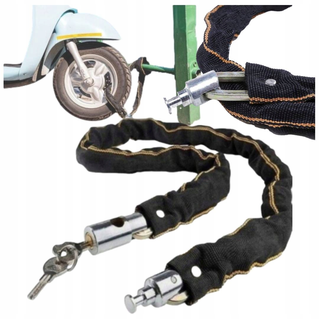 Цепной замок для мотоцикла или велосипеда. Длина 80 см, запирается навесным замком с 2 ключами в комплекте. Нейлоновая плетеная цепь.