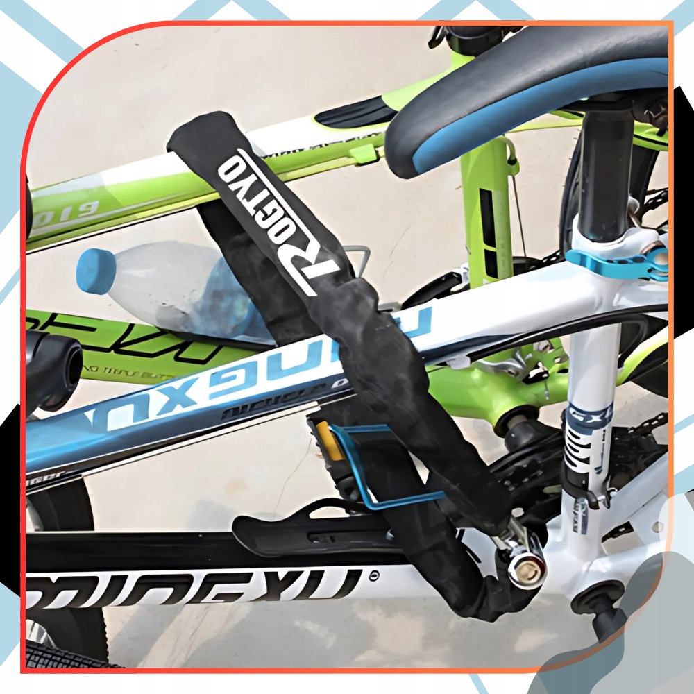 ✅ Застежка имеет длину 110 см, что позволяет удобно крепить раму и колесо к различным элементам – столбам, подставкам или перилам. Этого достаточно, чтобы легко закрепить классический велосипед, электрический велосипед и даже самокат. Утолщенные звенья повышают уровень защиты и создают явную помеху для режущих инструментов.