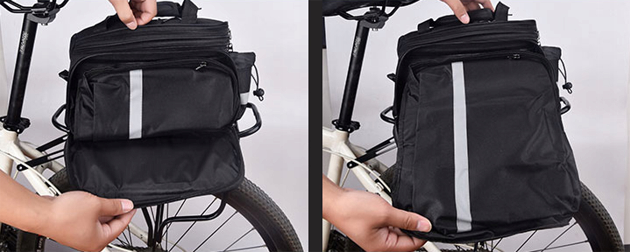 - Инновационный дизайн позволяет быстро монтировать и снимать сумку с велосипеда – так что вы всегда сможете взять ее с собой!