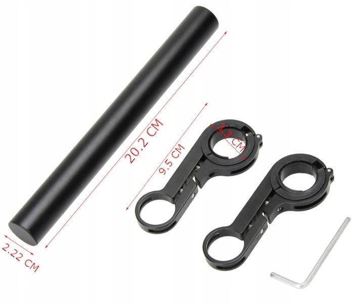 Прутка этого держателя для велосипедов имеет длину до 20 см. Этот тип удлинителя руля идеально подойдет для установки держателя для телефона, дополнительного фонаря, счетчика, звонка и других практичных гаджетов, которые пригодятся во время длительных и коротких велопоездок.