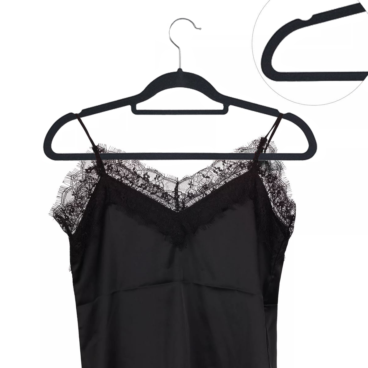 Благодаря профилированным углублениям на вешалке можно вешать всю одежду на тонких лямках, не боясь упасть.