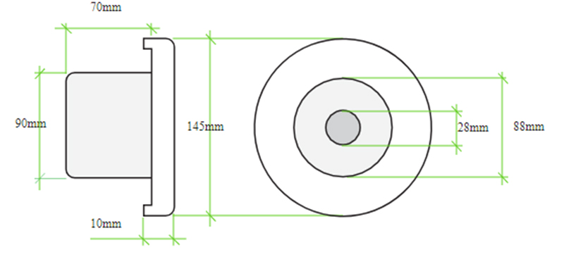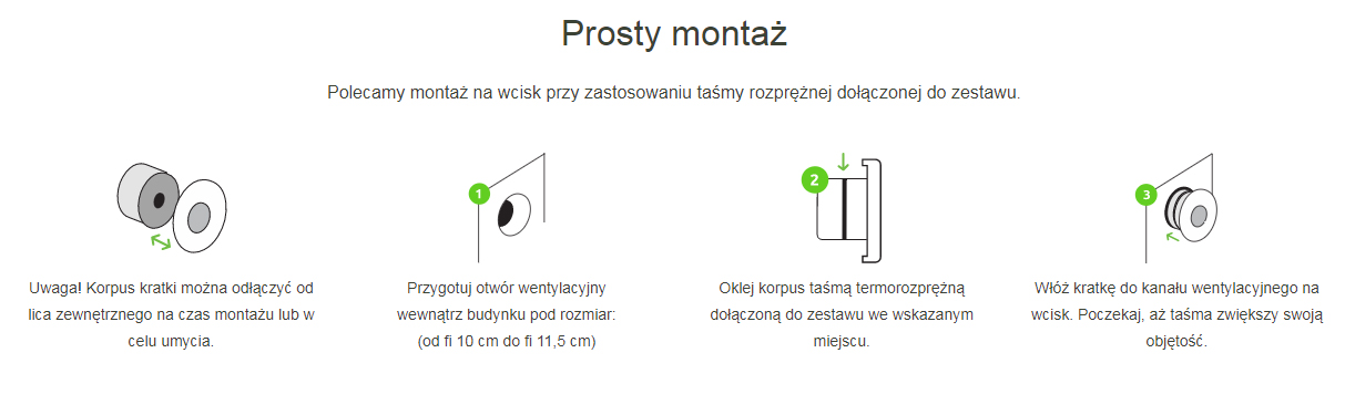 Использование для отверстий от 100 мм до 115 мм – круглое соединение. Продукт для использования внутри здания. Запрессовка с помощью расширяющейся ленты, входящей в комплект. Подходит вместо стандартной решетки fi100.