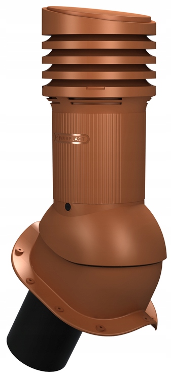 Комплексный камин Wirovent Perfekta EVO, регулируемый (0-50 градусов) под металлочерепицу, диаметр вентканала 150 мм, высота 490 мм. С отводом конденсата наружу, со встроенным уровнем в разъеме для вертикального расположения камина. Скрытые крепежные винты.
