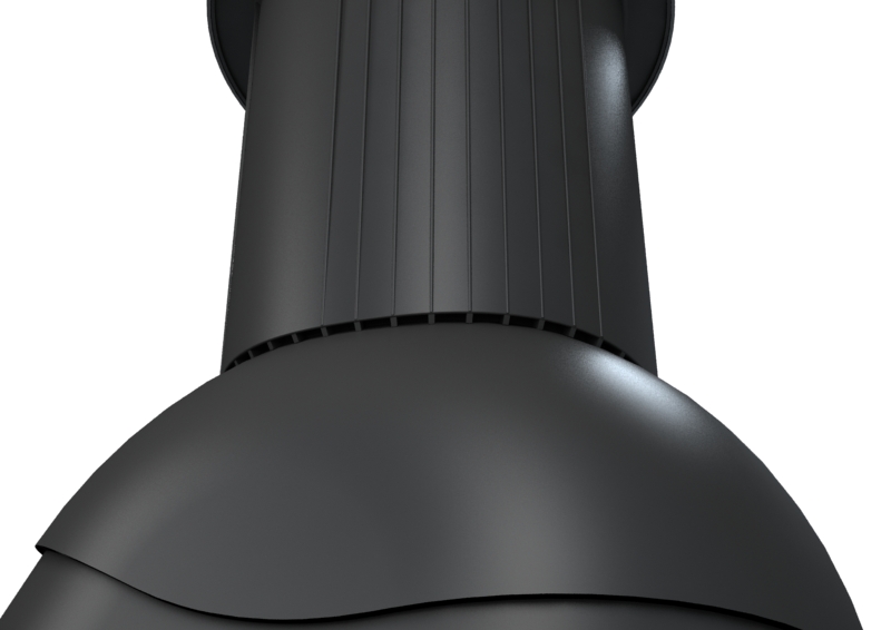 Комплексный вентиляционный дымоход диаметром 125 мм с отводом конденсата наружу, с основаниями, адаптированными под бетонную или керамическую черепицу. Специальные каналы отводят конденсат за пределы кровельного покрытия. Со встроенным уровнем для вертикального расположения камина.