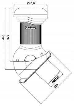 Комплектующий регулируемый камин Wirovent Pro (0-50 градусов), неутепленный, с диаметром вентиляционного канала 125 мм. Для трапециевидных листов Т-35. С отводом конденсата наружу, со встроенным уровнем для вертикального расположения камина.
