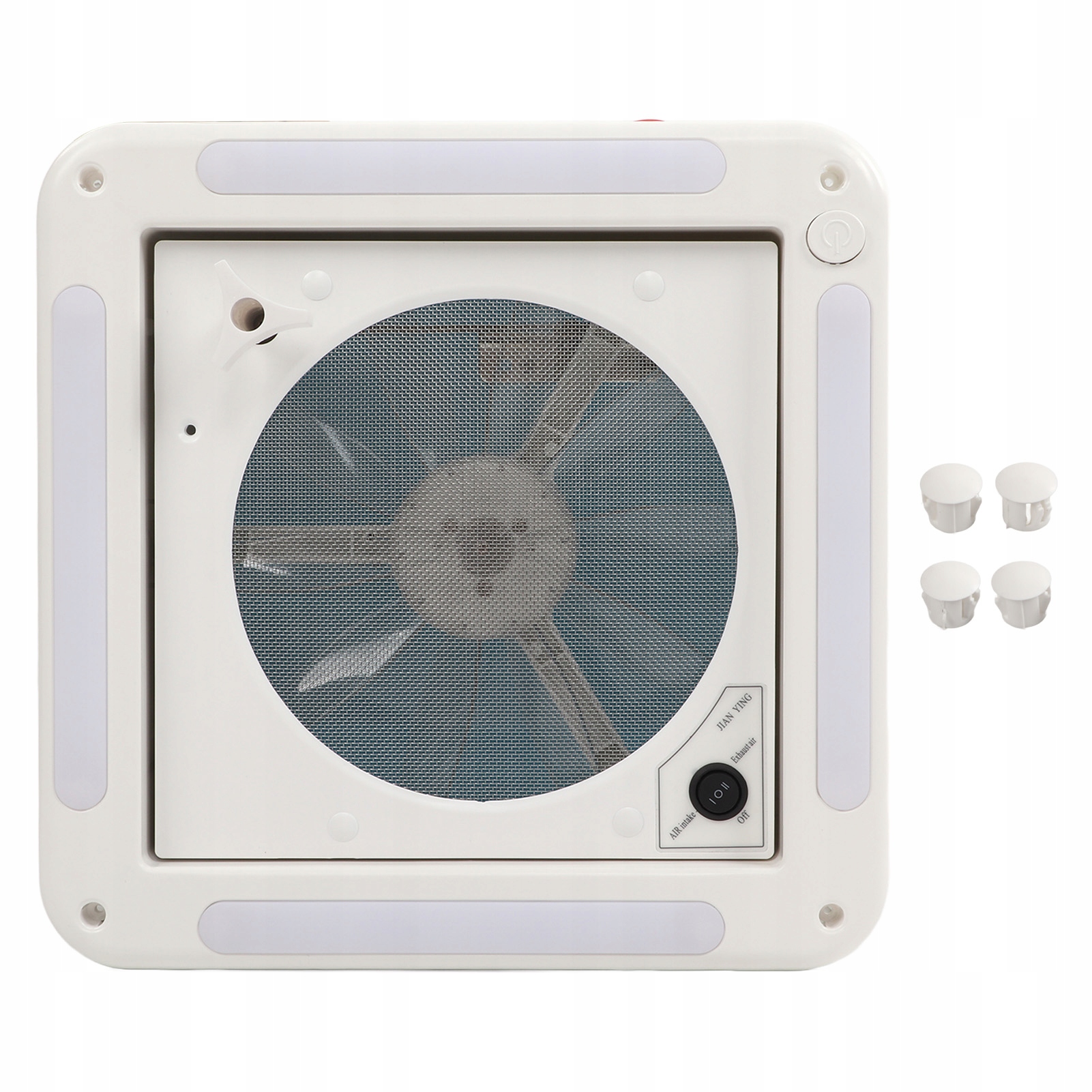 Особенности: Оснащен москитной сеткой из нержавеющей стали. сталь, двигатель с сердечником из чистой меди, надежный и эффективный, 10 лопастей, более стабильная работа, более тихий, двусторонний выхлоп, 4 светодиодные ленты, также можно использовать для освещения.