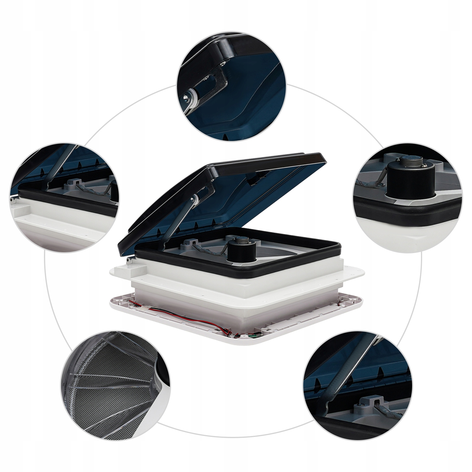 - Многофункциональный вентилятор: В дополнение к вентиляции, его также можно использовать в качестве ежедневного освещения. Встроенные в 4 светодиодных фонаря могут обеспечить достаточную яркость, чтобы осветить внутреннее пространство кемпера (около 2 м²), так что вы можете комфортно двигаться даже ночью или в условиях плохого освещения.