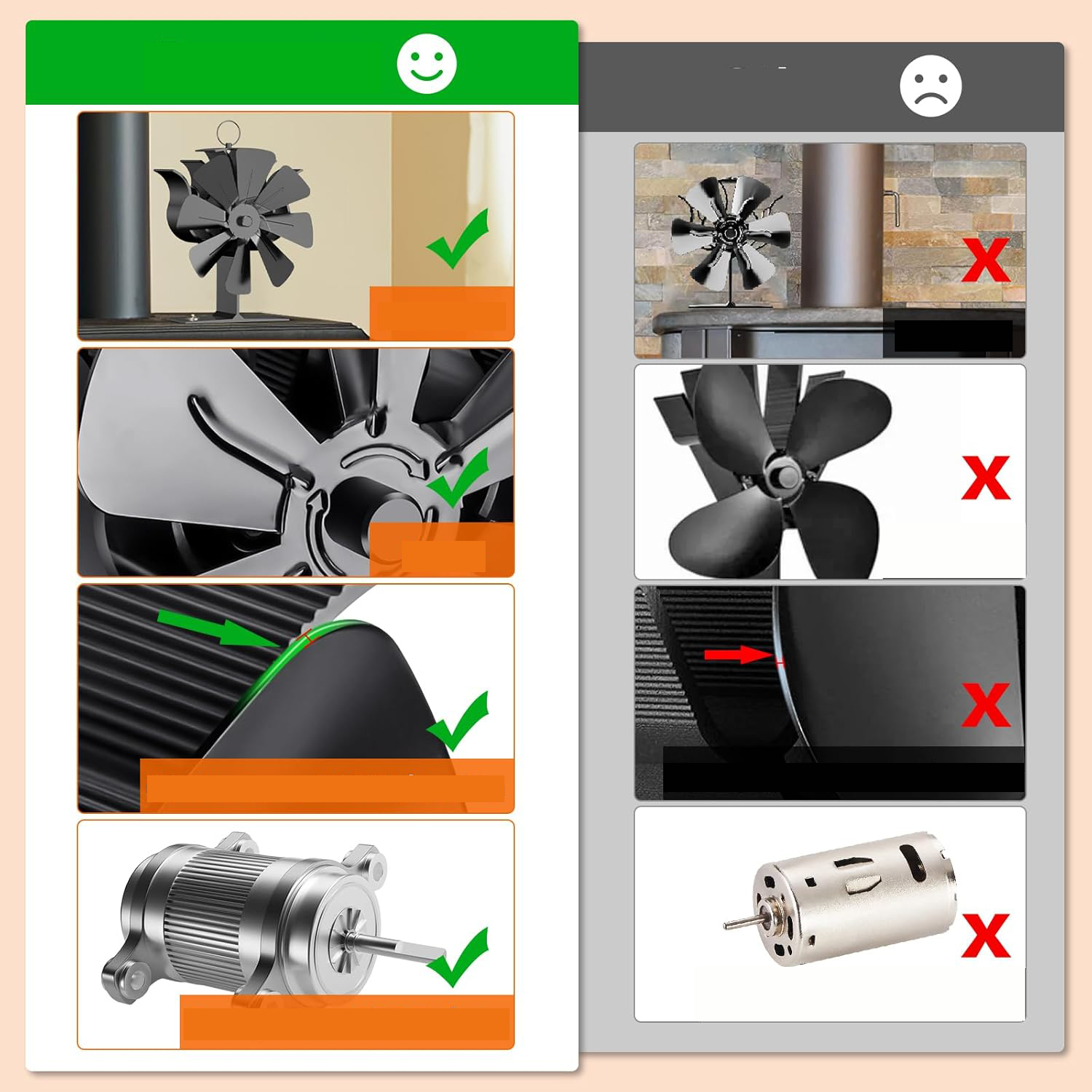 🔥🔥🔥【Лучшее распределение тепла】 Улучшенный 8-лопастной вентилятор: встроенный The 8 Конструкция лопастей вентилятора и новая форма конвекционного вентилятора позволяют быстрее рассеивать тепло, производить больше теплого воздуха и повышать производительность. Наши 8-лопастные вентиляторы прошли тщательные испытания в каминах, щепе, газовых плитах и т. д. Меньше искажений, быстрее и более равномерное выделение тепла по сравнению с другими вентиляторами на рынке.
