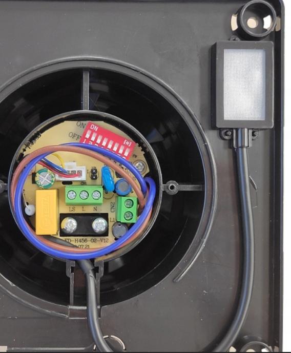Работа без выключателя (автоматический вариант) - вентилятор постоянно контролирует показания датчика влажности. Когда уровень относительной влажности превышает установленный порог, вентилятор запускается и работает до тех пор, пока влажность не упадет до заданного уровня. Затем он продолжает работать в течение установленного времени задержки, а затем выключается.