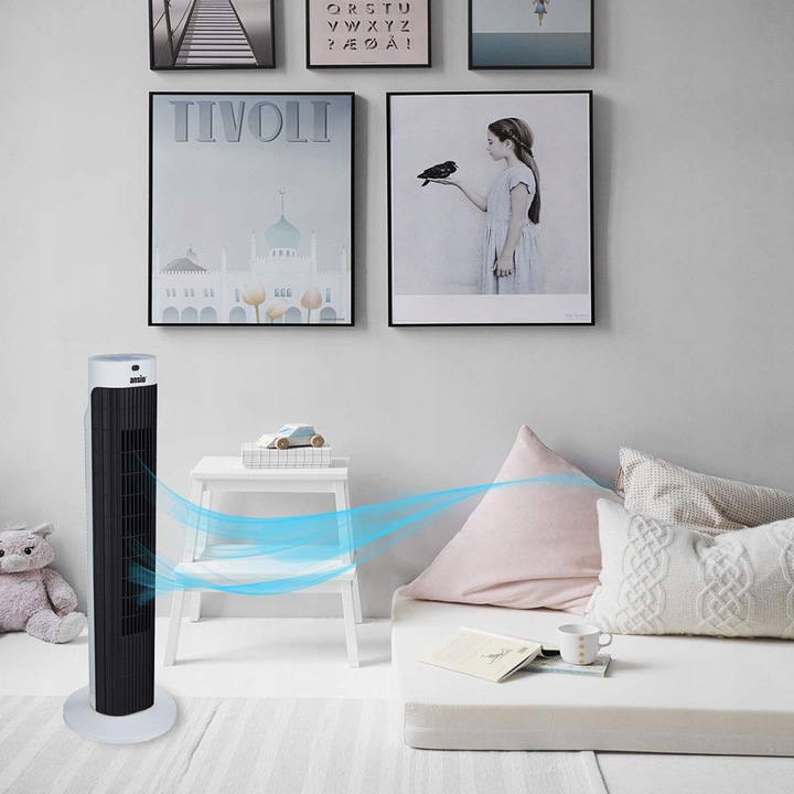 КОМФОРТНЫЙ ОХЛАЖДАЮЩИЙ ЭФФЕКТ: черно-белый вентилятор Ansio Tower представляет собой идеальное сочетание дизайна, производительности и качества. Башенный вентилятор, изготовленный из прочного АБС-пластика, подает прохладный воздух по широкой площади покрытия. Встроенная ручка для переноски облегчает переноску.