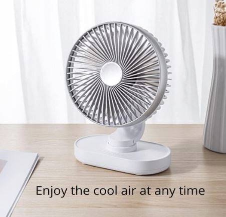 4 скорости воздушного потока, скорость ветра можно выбрать в зависимости от температуры окружающей среды, подходит для использования дома, в офисе или даже на открытом воздухе. Плоское основание и нескользящие круглые силиконовые накладки внизу можно устойчиво разместить на плоской поверхности и использовать без опасений.