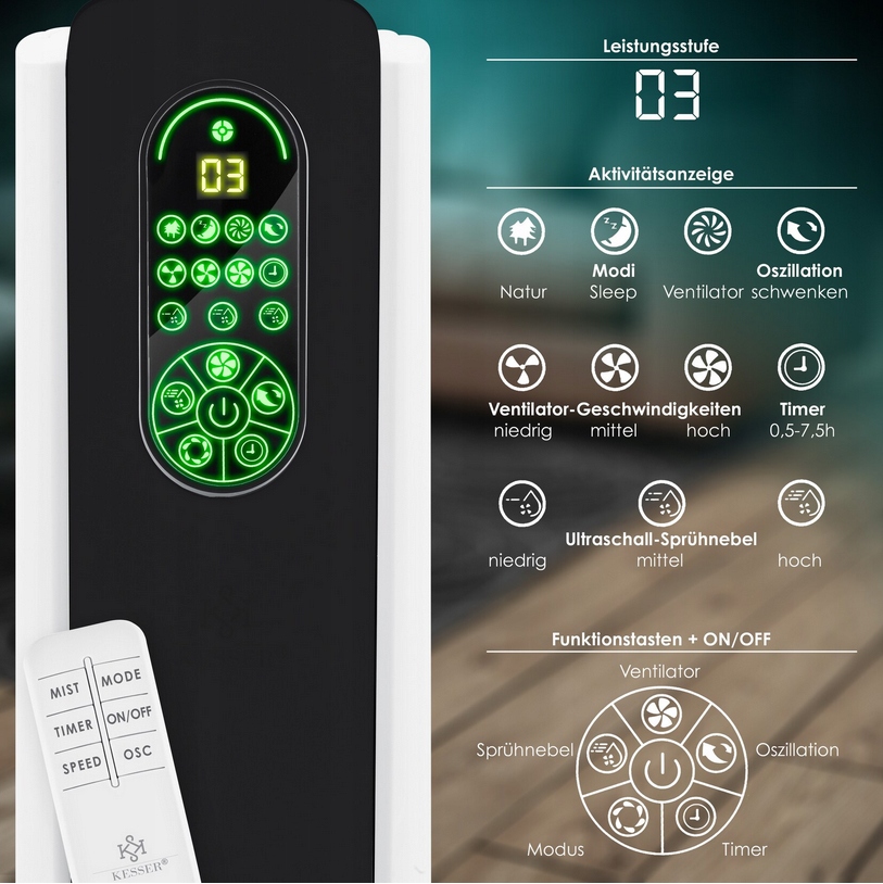 ✅ Напольный вентилятор KESSER Frosty с ультразвуковой функцией водяного тумана и дистанционным управлением