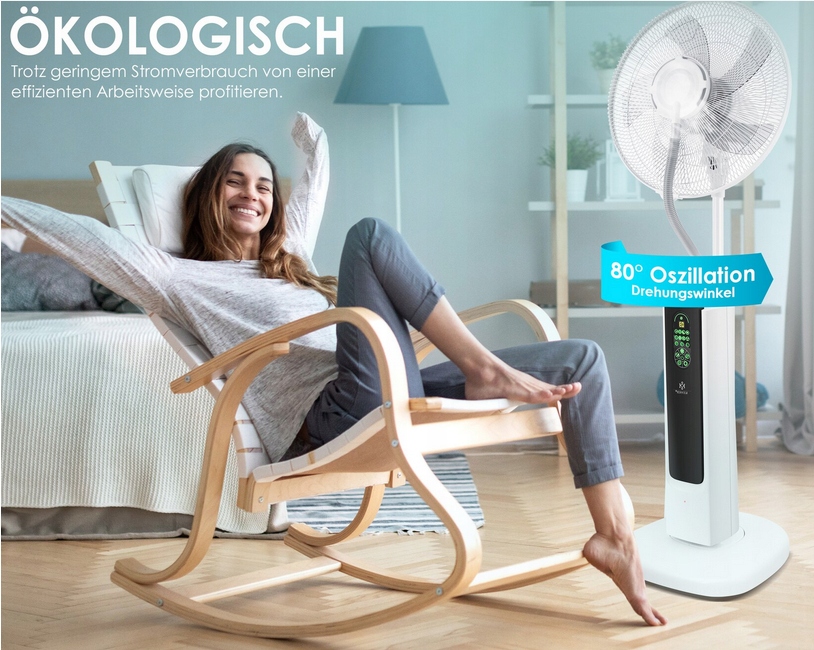 Туманный вентилятор не только обеспечивает поток воздуха, но и охлаждает окружающую среду освежающим водяным туманом. Эта функция быстро устраняет сухость воздуха, которая часто появляется как летом, так и зимой. Кроме того, устройство имеет функцию ионизатора, которая улучшает качество воздуха, нейтрализуя неприятные запахи и уменьшая количество пыли, пыльцы и микробов.