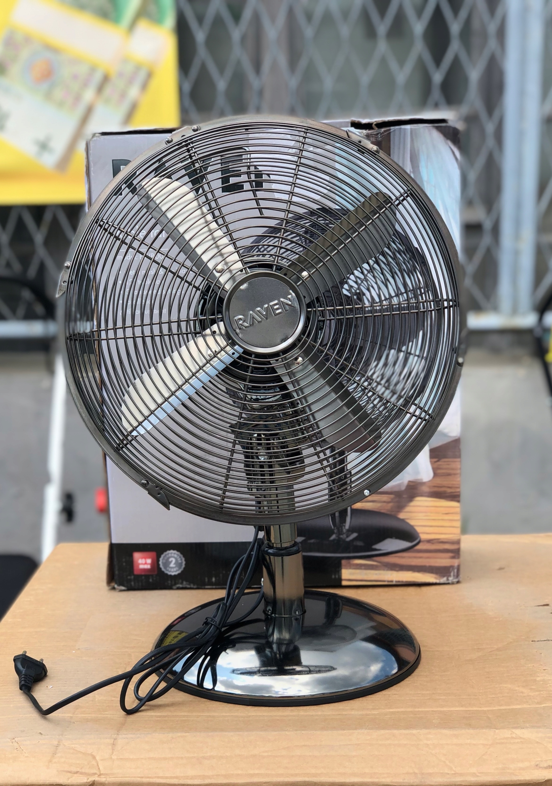 Настольный вентилятор RAVEN EWB001 мощностью 40 Вт представляет собой изделие, полностью выполненное из металла.