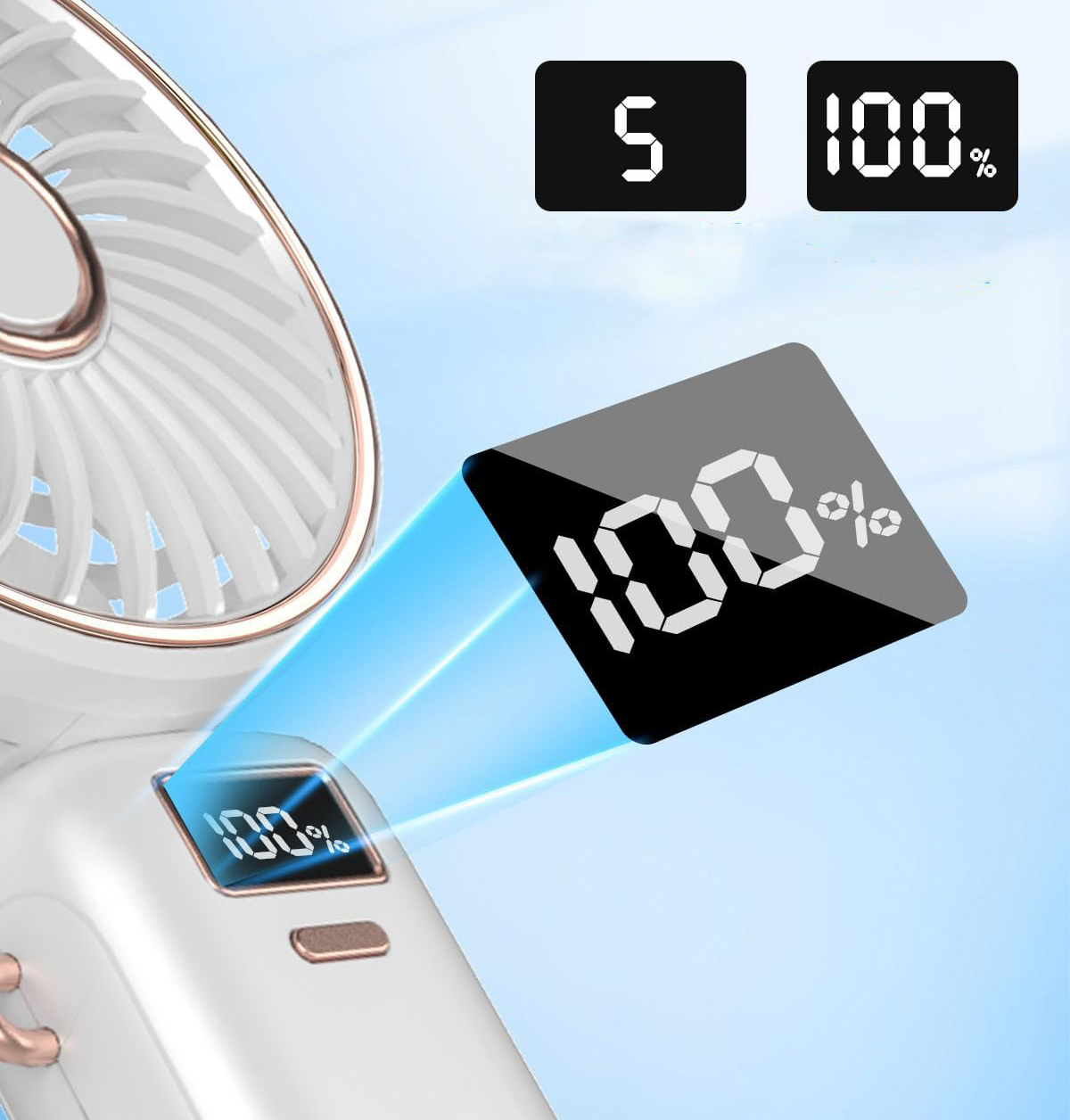 По сравнению с аналогичными продуктами на рынке, этот небольшой вентилятор инновационно увеличивает пять скоростей ветра для удовлетворения ваших потребностей в различных ситуациях.