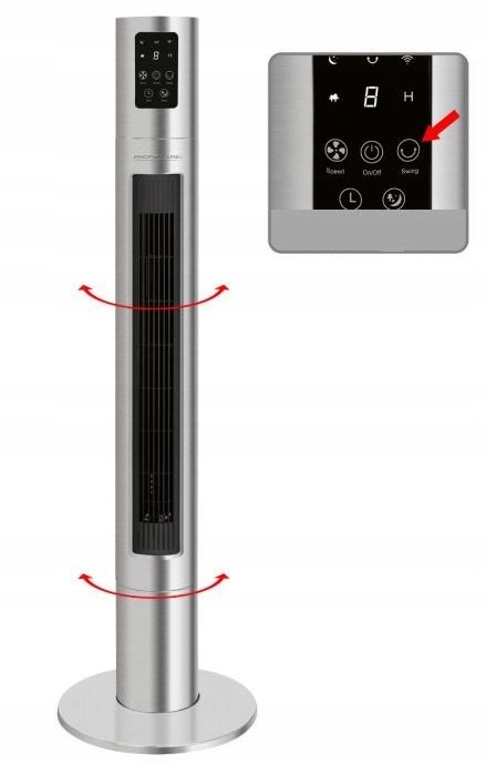 Корпус тонкий, стильный и изготовлен из нержавеющей стали. Благодаря этому вентилятор очень регулируется, занимает мало места и легко перемещать. Высота 120 см гарантирует эффективную работу. Если вы хотите, вы можете использовать таймер с диапазоном времени 9 часов для автоматического включения или выключения устройства. Вентилятор отлично смотрится в каждой комнате и безопасен.