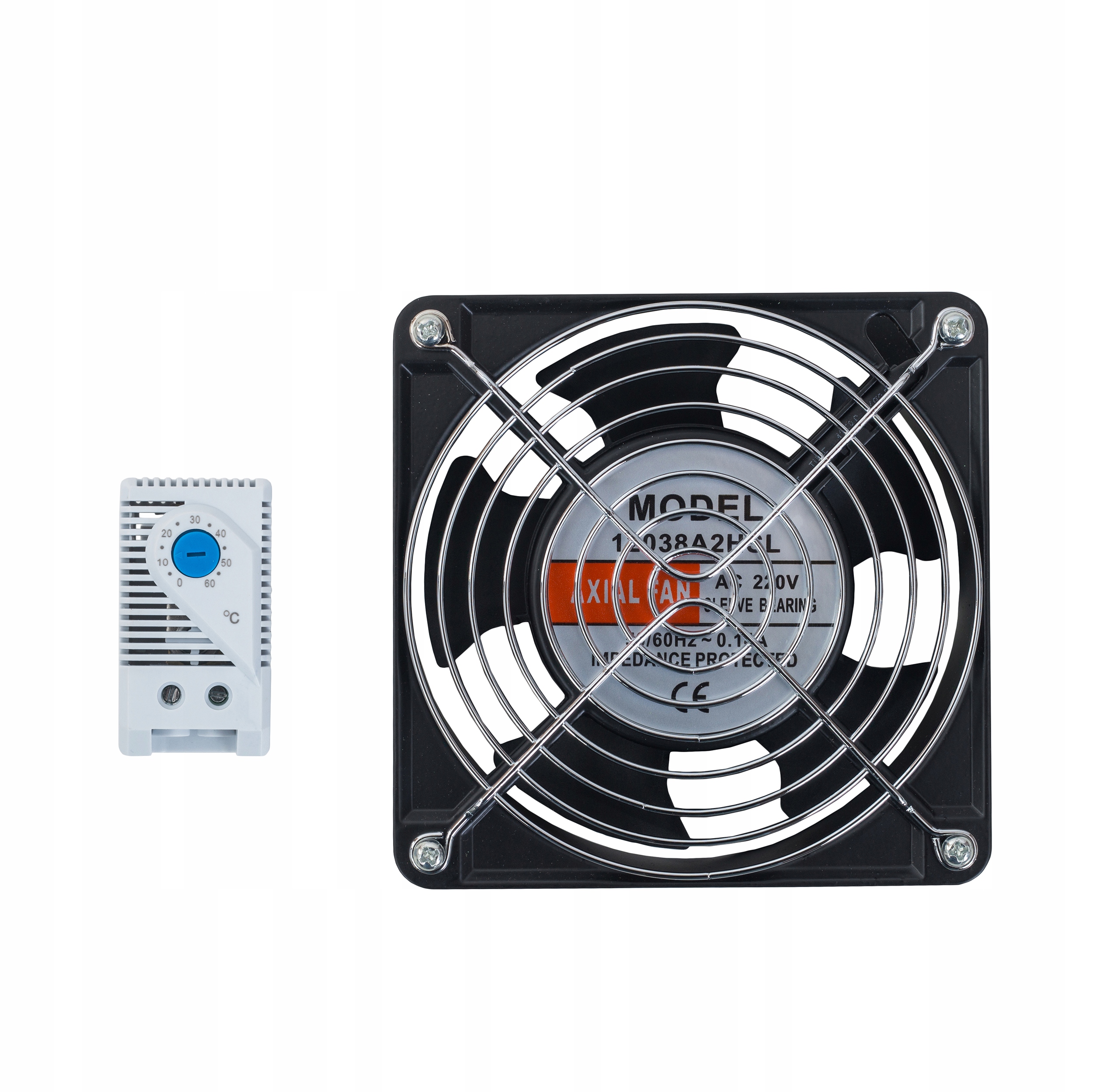 ВЕНТИЛЯТОР С ТЕРМОСТАТОМ ДЛЯ СТОЙОЧНОГО ШКАФА 230 В, 120 x 120 x 38 мм, AXIAL/KTS-011