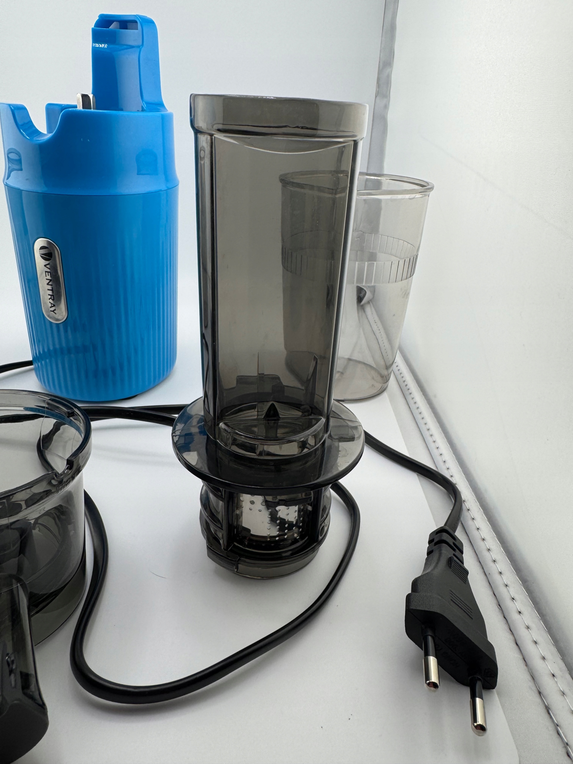 Вентри Джинни Соковирову | Медленная скорость соковыжималка с 60 об / мин | Функция реверсирования отверстий 45 мм и два размера фильтров без BPA 100 -ватт. Легко чистый и тихой сонный дизайн, 400 мл, синий