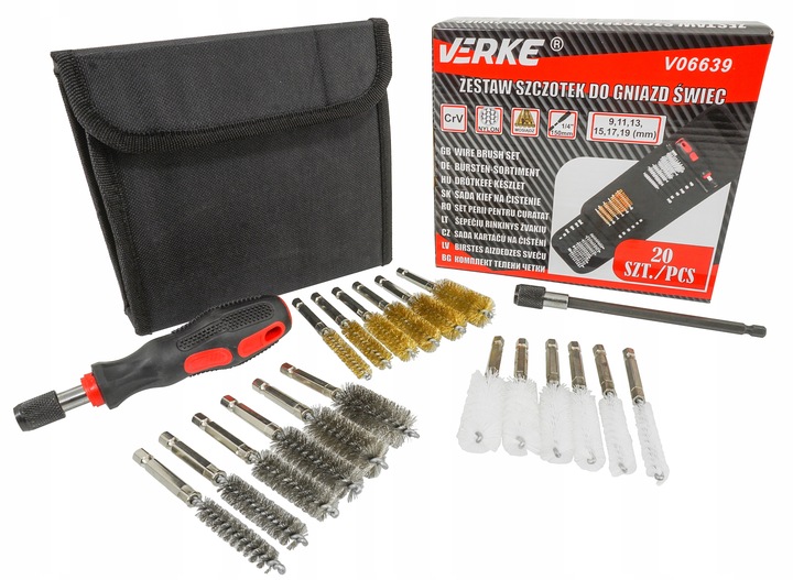 НАБОР ЩЕТКОВ ДЛЯ СВЕЧНЫХ ПОДАЧ 20 ЭЛЕМЕНТОВ. VERKE