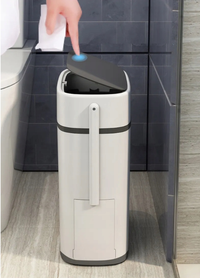 Новая интеллектуальная, инновационная мусорная корзина вместе с ершиком он прекрасно впишется в любую ванную комнату.